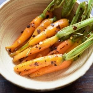 The best way to treat seasonal baby carrots like these is to glaze them in a buttery glaze accented by some earthy honey and spicy